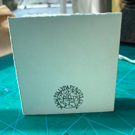 Each card is made from approx 9.5 x 9.5 cm heavy Fabriano watercolour paper with the fabric design mounted on to the front and my logo on the back.