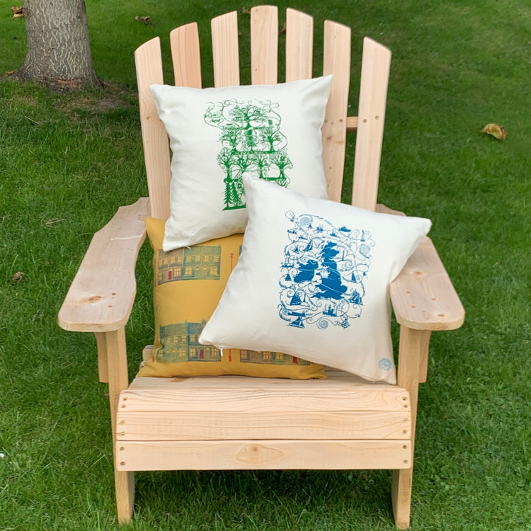 My cushion covers are all handprinted using a combination of silkscreen, lino printing and block printing.