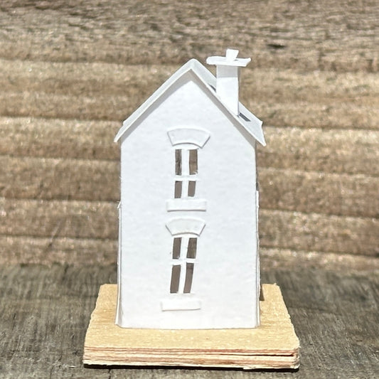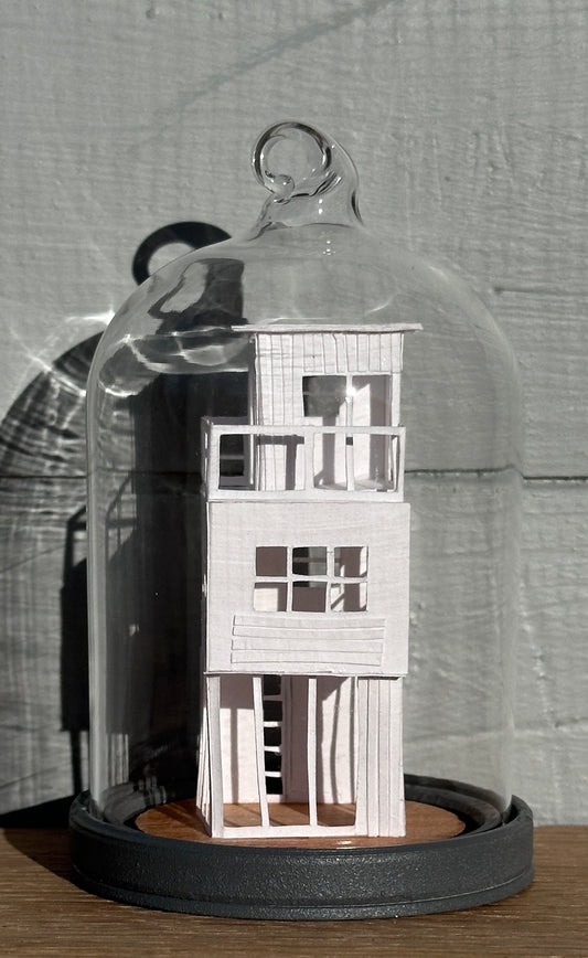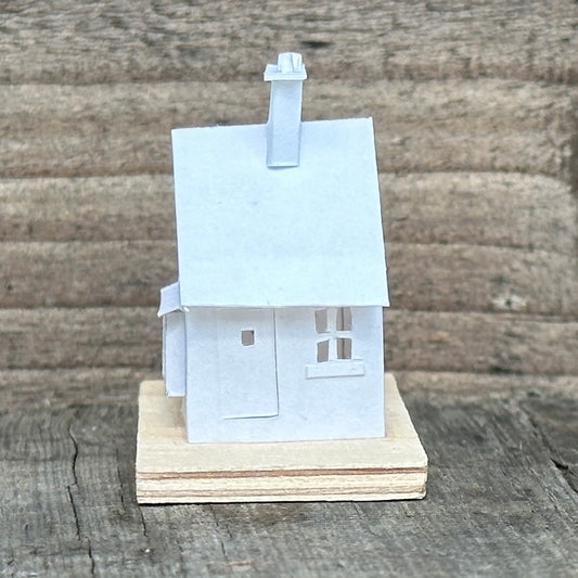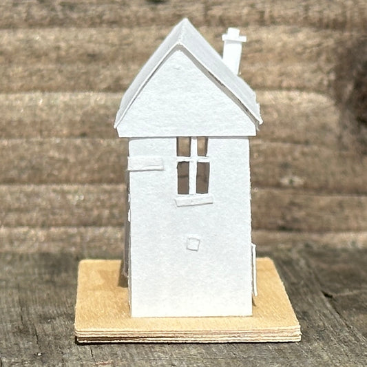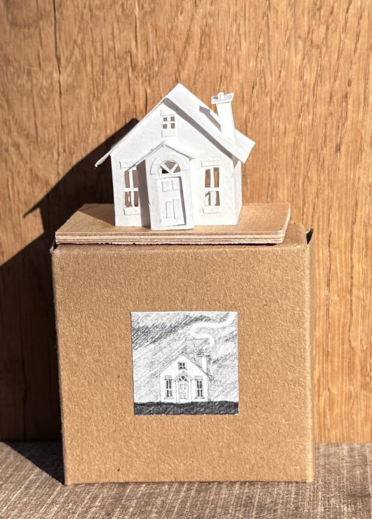 The design for each Tiny House is sketched in pencil before being intricately cut out by hand and constructed using acid free cartridge paper before receiving a coat of matt varnish.