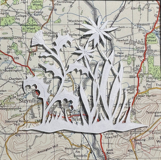 If you can't see a map that you like please contact me and I can source your chosen map location for the background or if you don't like maps I have a selection Canson Mi-Teintes coloured paper onto which I can mount the papercuts.
