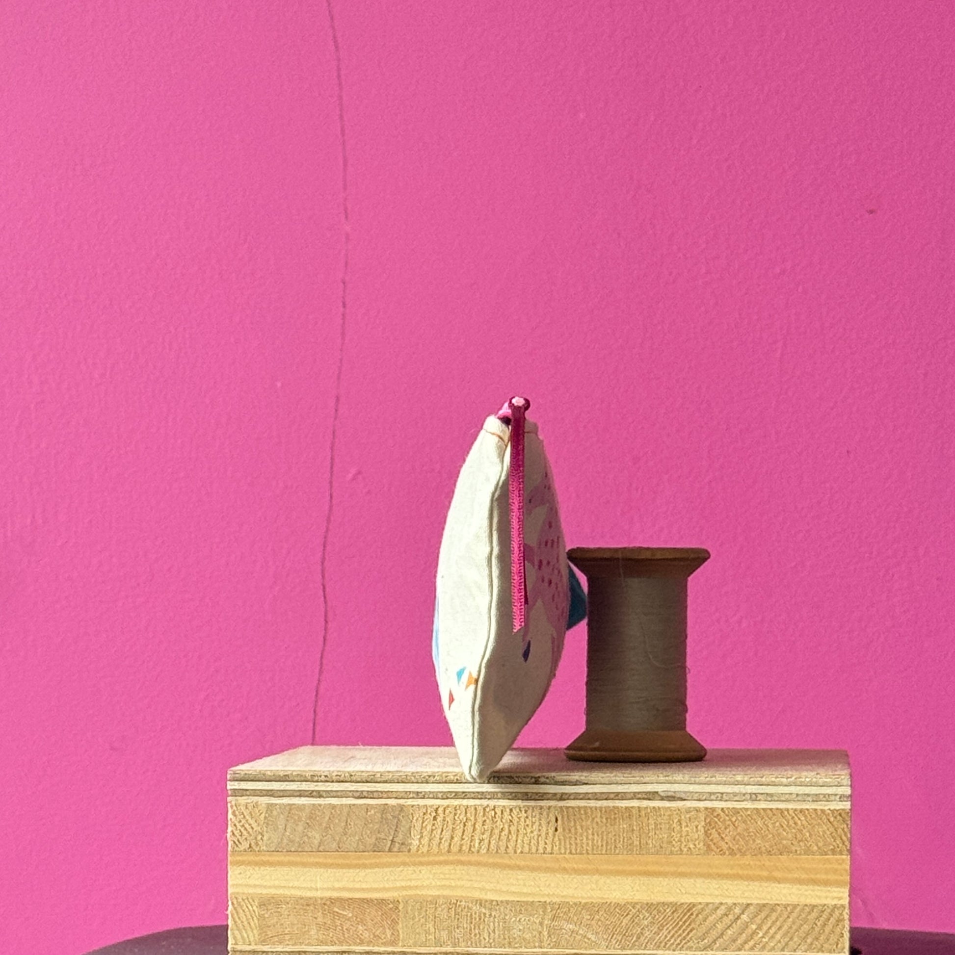 All my purses are hand printed and handmade by me, using either stencil, lino or silkscreen printing onto cotton or linen. Each purse is a one-off unique item.