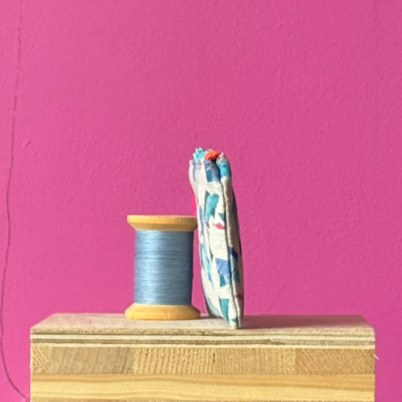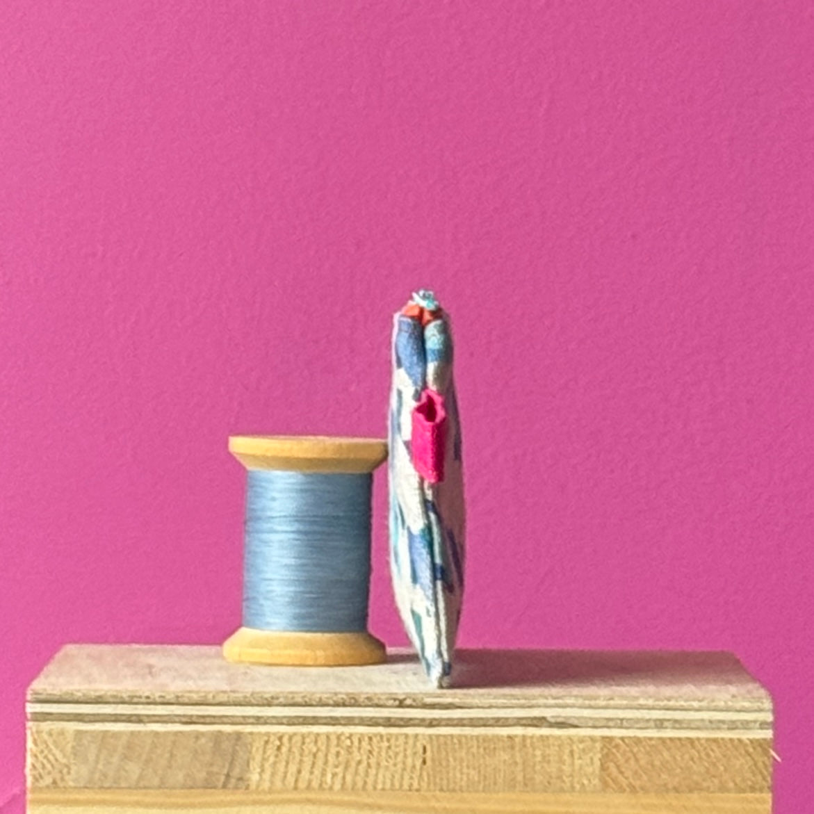 All my purses are hand printed and handmade by me, using either stencil, lino or silkscreen printing onto cotton or linen. Each purse is a one-off unique item.
