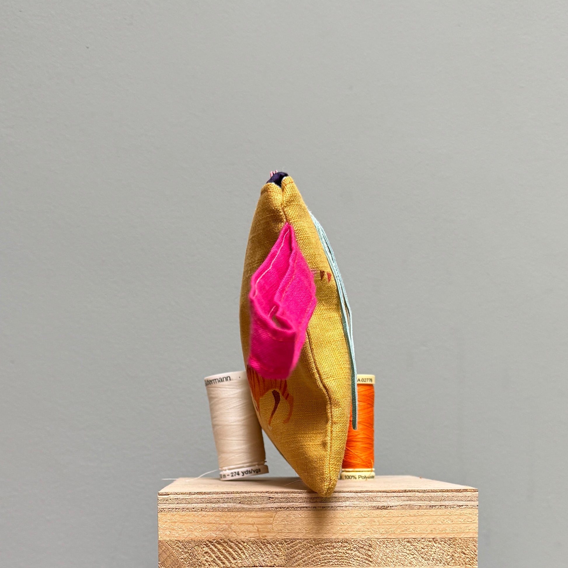 Everything in this collection based on Sam's imaginary friends from the Wonderful World of Mustard, I hand cut each stencil and print the characters individually onto linen and cotton. Each purse is sewn by me and is fully lined in a bright coloured linen or cotton.