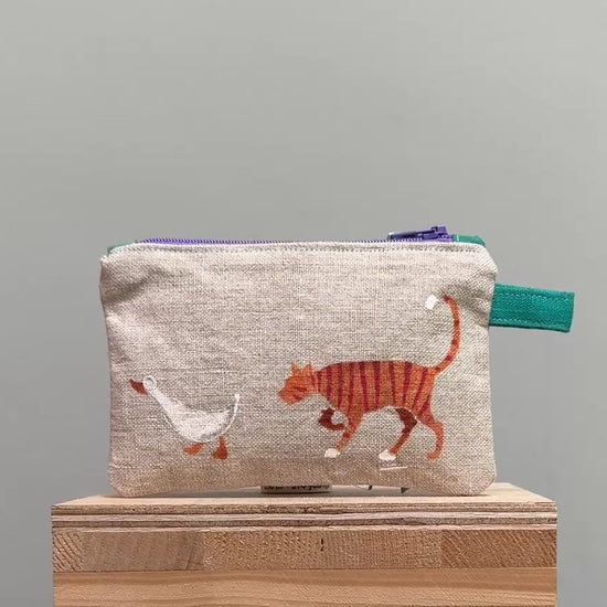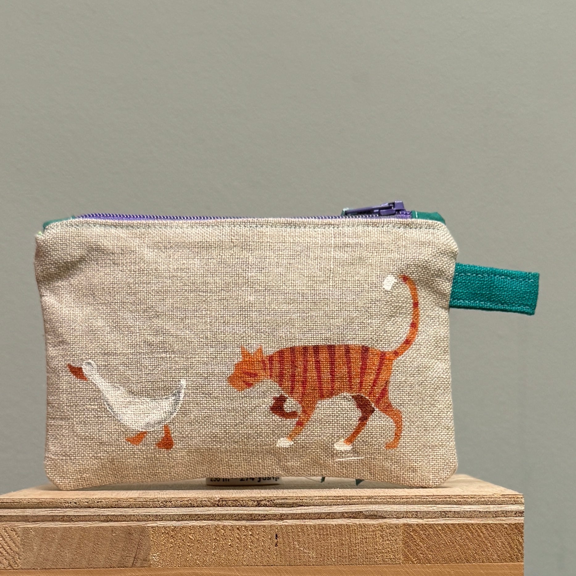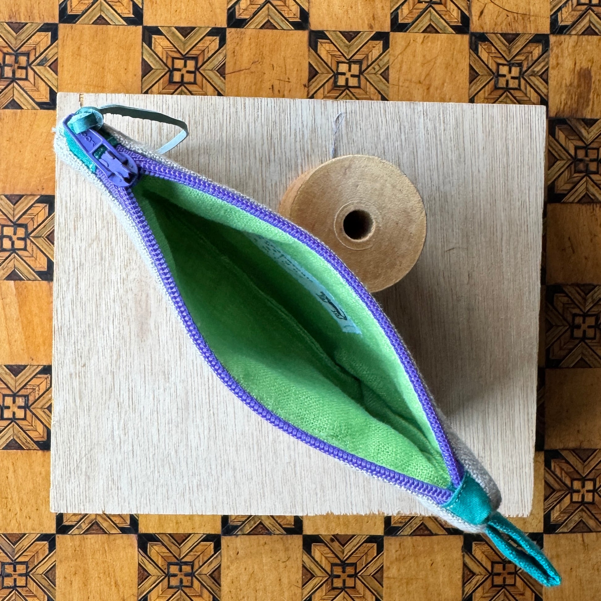 Everything in this collection based on Sam's imaginary friends from the Wonderful World of Mustard, I hand cut each stencil and print the characters individually onto linen and cotton. Each purse is sewn by me and is fully lined in a bright coloured linen or cotton.