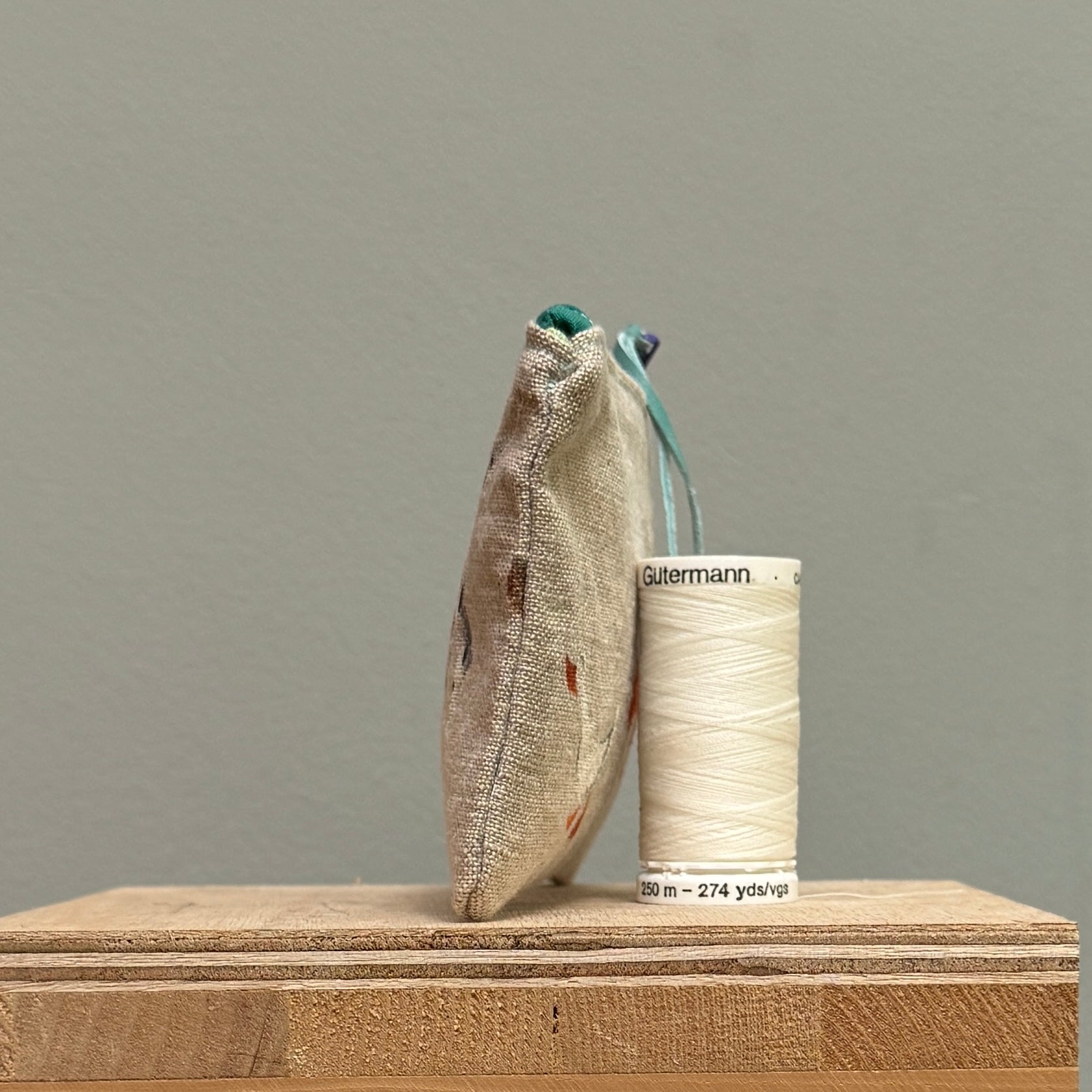 This lovely purse has been hand stencilled on to lovely natural linen.