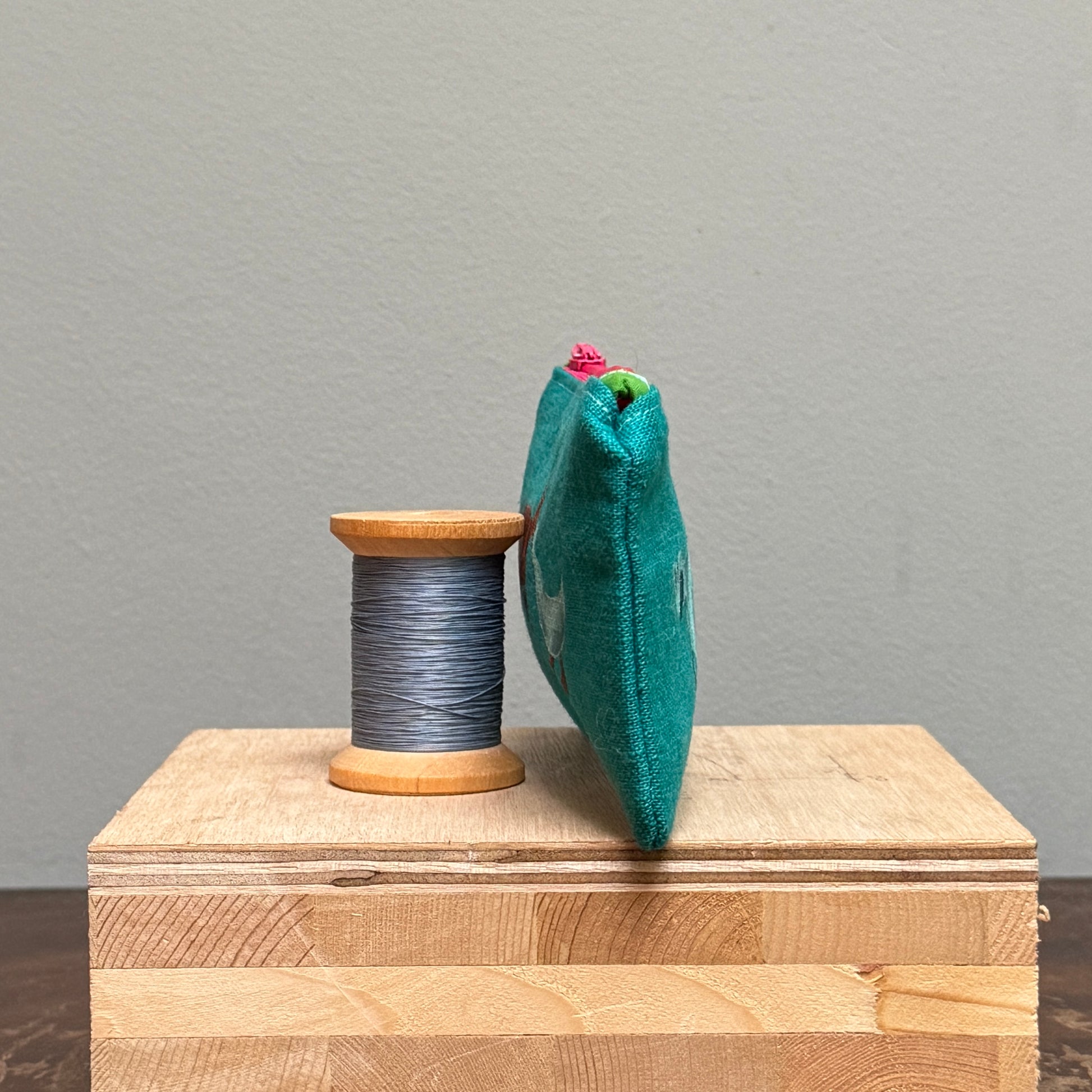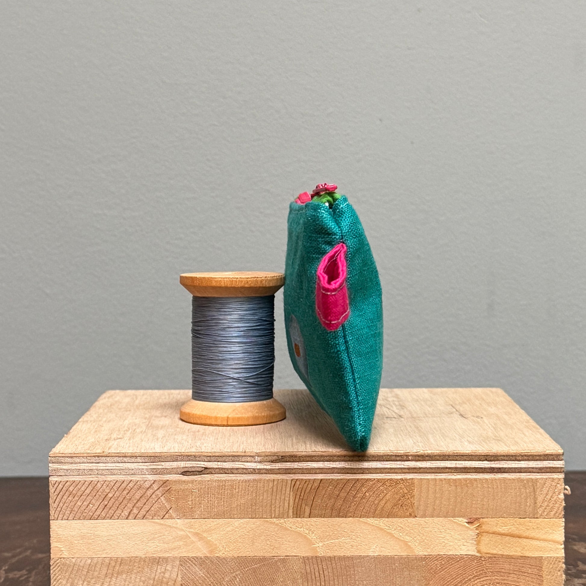 This lovely purse has been hand stencilled on to lovely turquoise linen.