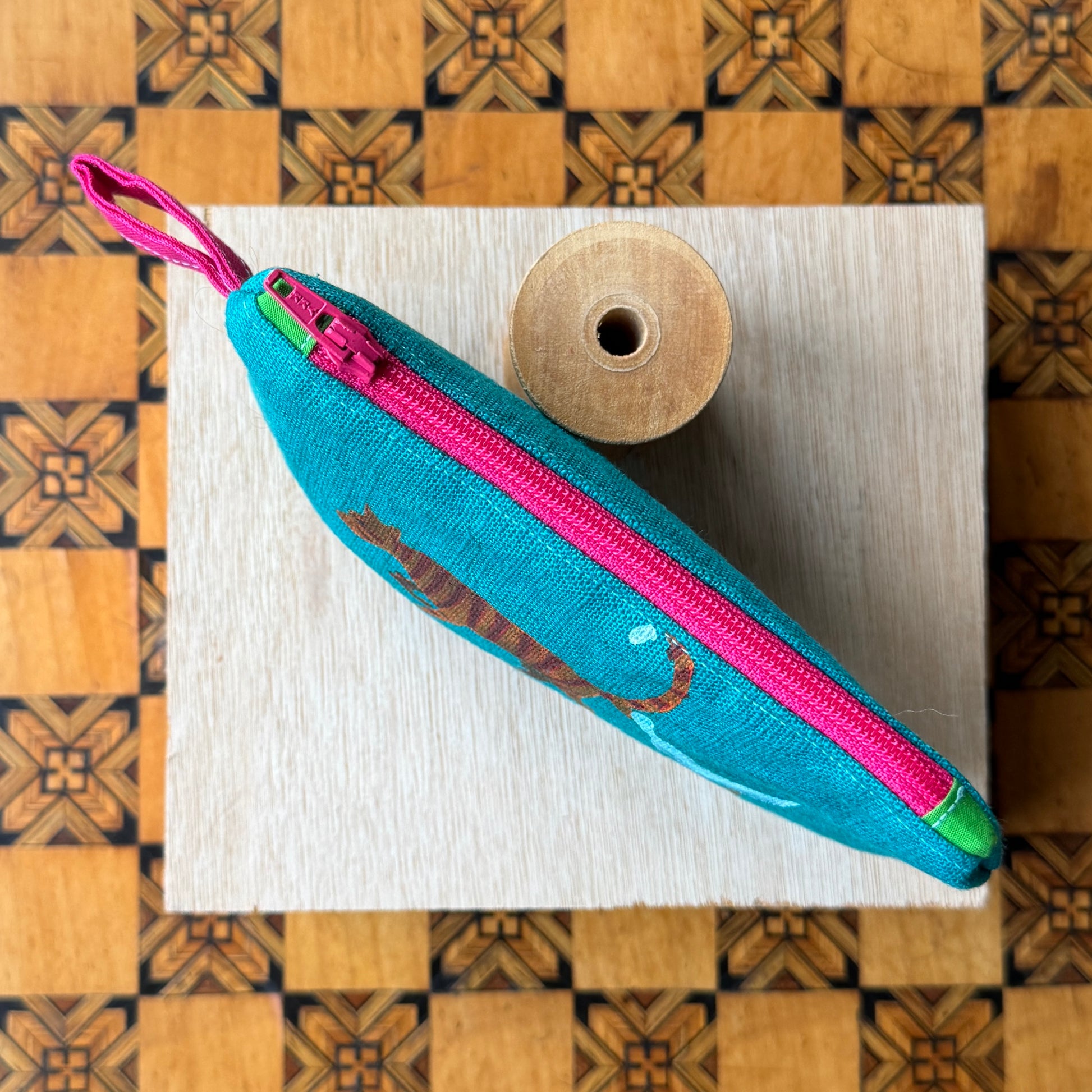 Everything in this collection based on Sam's imaginary friends from the Wonderful World of Mustard, I hand cut each stencil and print the characters individually onto linen and cotton. Each purse is sewn by me and is fully lined in a bright coloured linen or cotton.