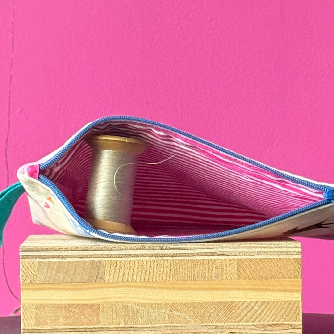 All my purses are hand printed and handmade by me, using either stencil, lino or silkscreen printing onto cotton or linen. Each purse is a one-off unique item.