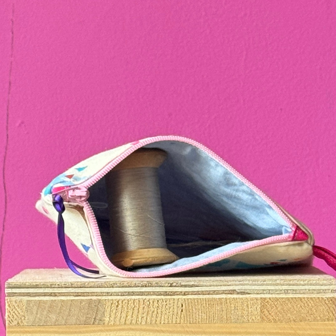 All my purses are hand printed and handmade by me, using either stencil, lino or silkscreen printing onto cotton or linen. Each purse is a one-off unique item.