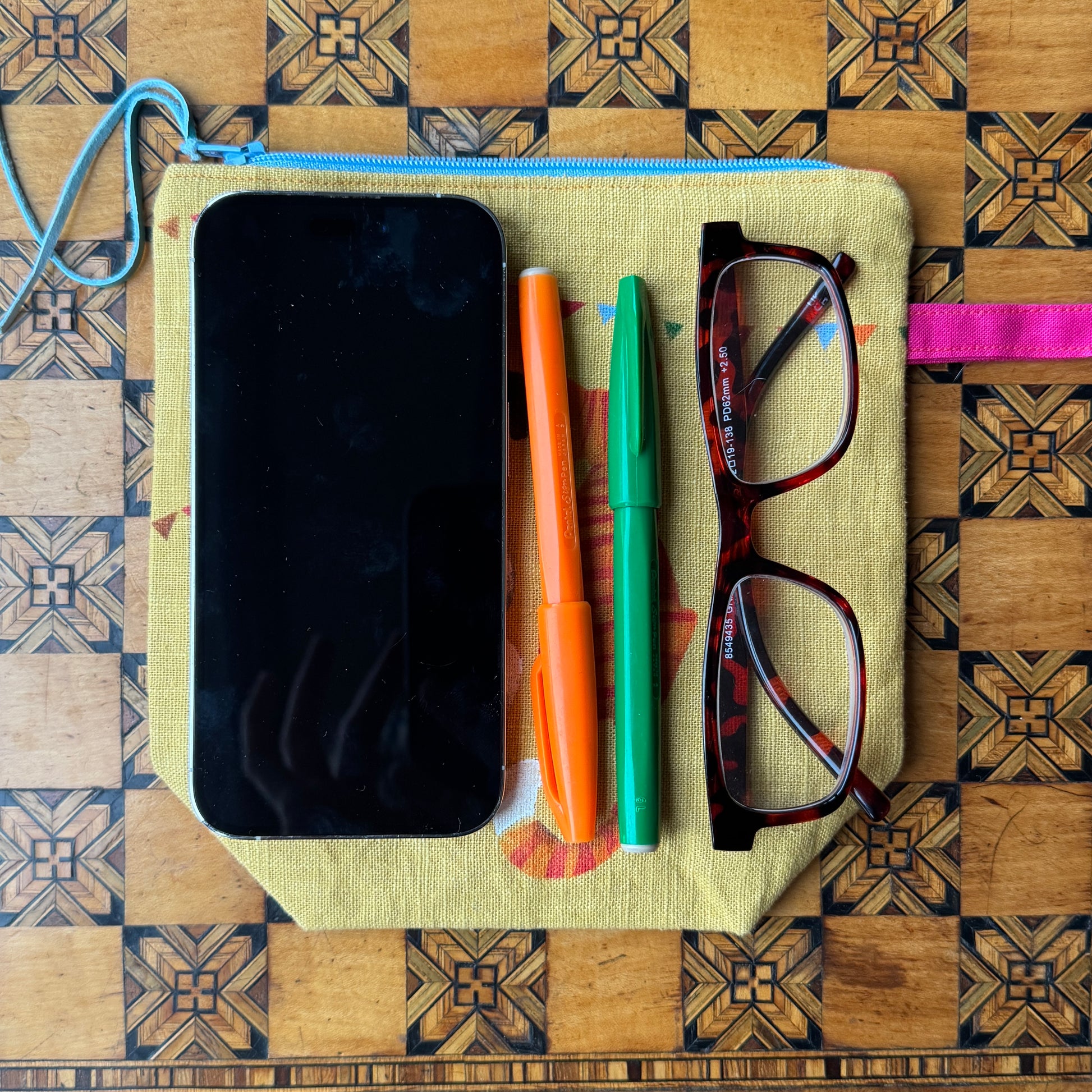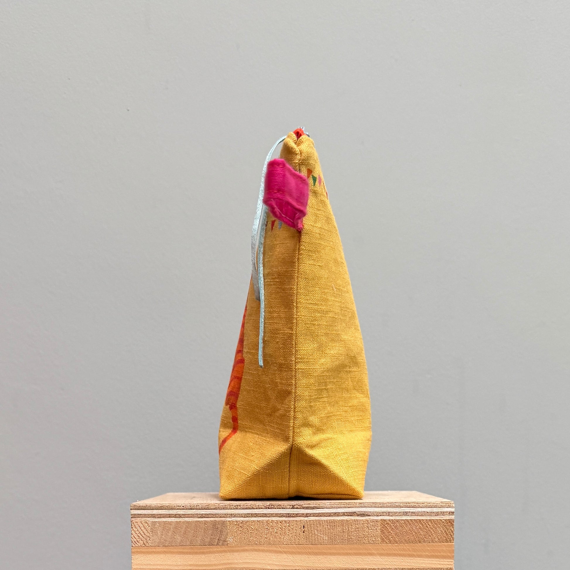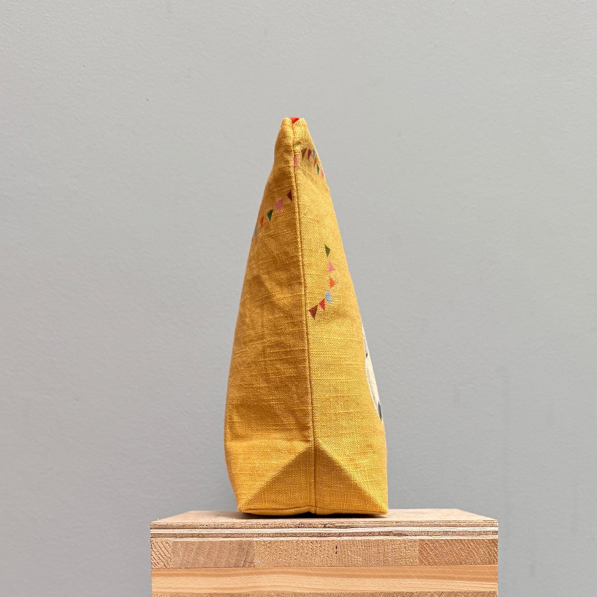 Everything in this collection based on Sam's imaginary friends from the Wonderful World of Mustard, I hand cut each stencil and print the characters individually onto linen and cotton. Each purse is sewn by me and is fully lined in a bright coloured linen or cotton.